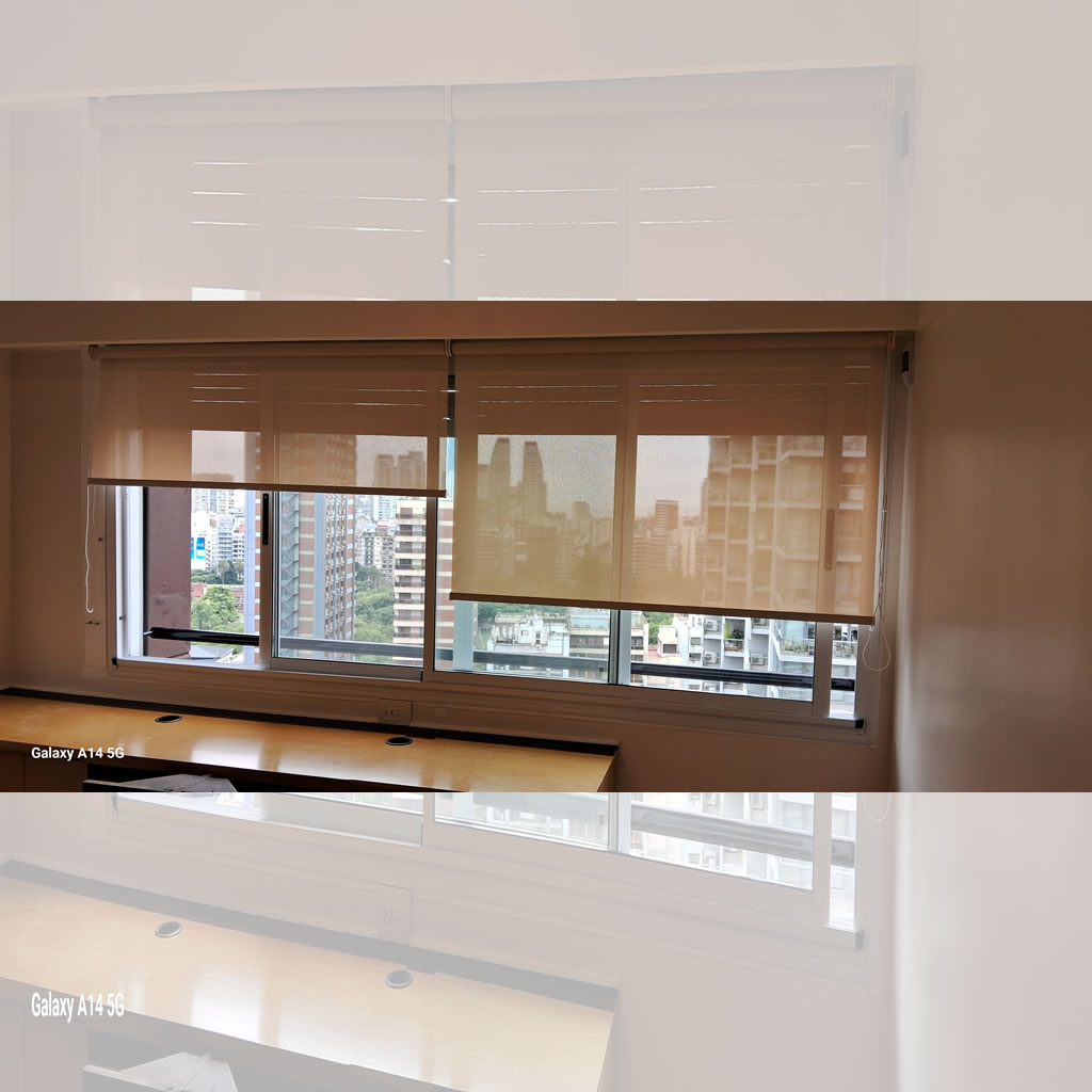 Las cortinas roller sunscreen son las indicadas si estás buscando un equilibrio entre visibilidad y luminosidad. Son resistentes al fuego y dimensionalmente estables.