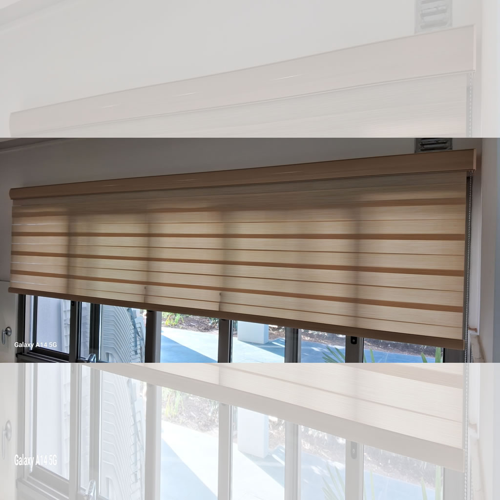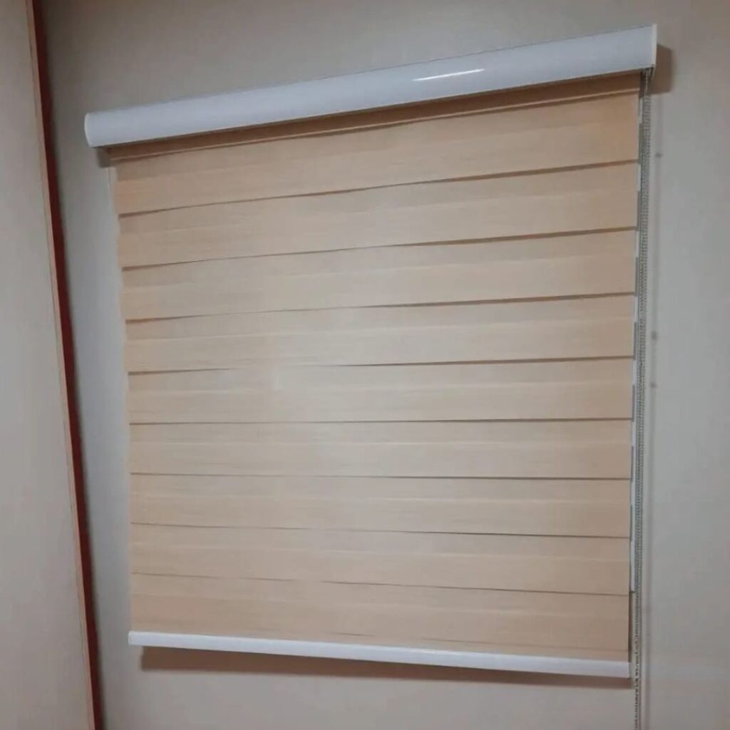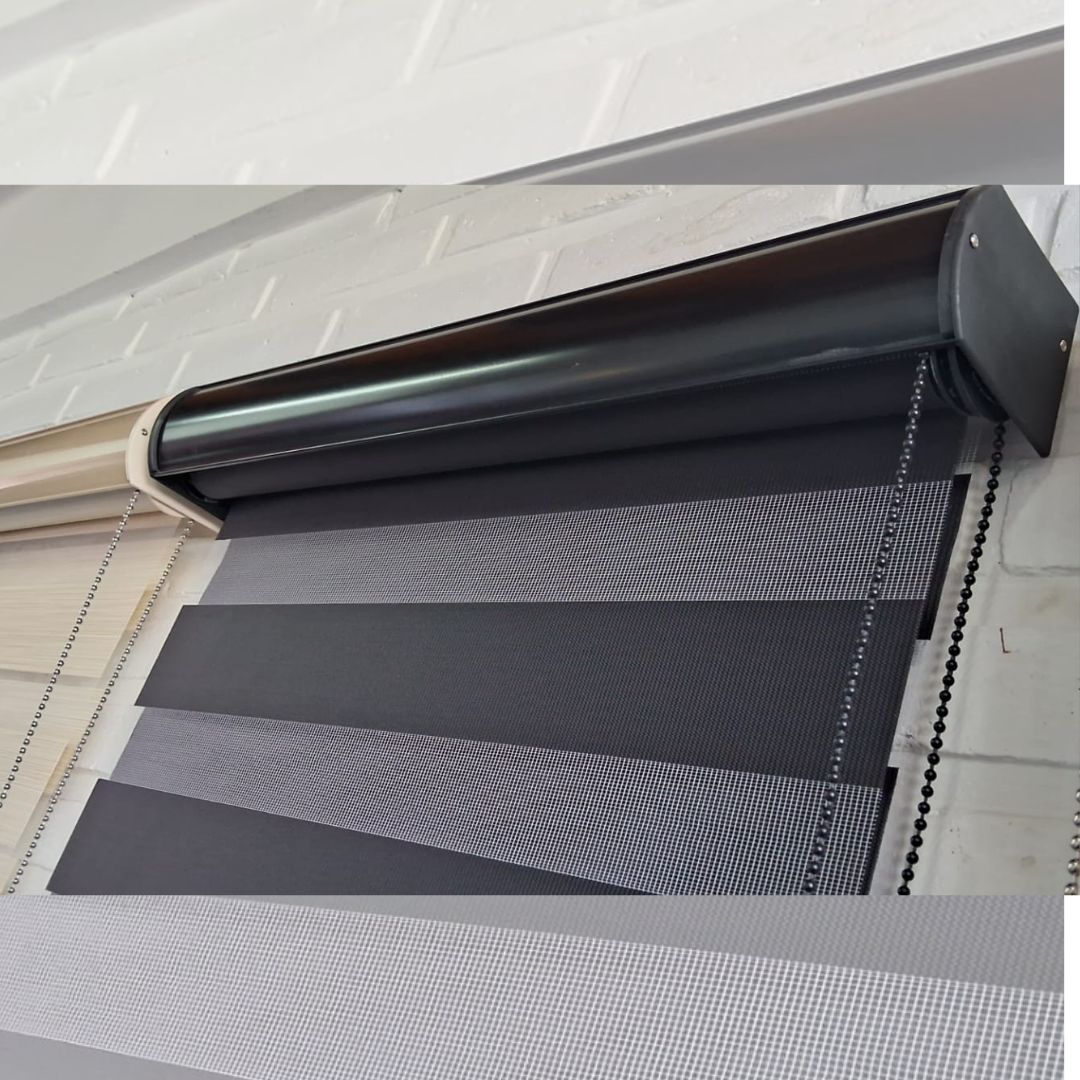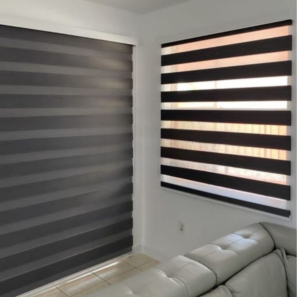 Cortinas Roller Zebra son un sistema doble de bandas horizontales fabricado con maquinaria de alta tecnología y los mejores materiales del mercado. Este tipo de sistema permite que al estar enrollado (posición cerrada) el ambiente tenga total privacidad sin perder iluminación y que al estar desenrollado (posición abierta) se pueda tener una visión clara hacia el exterior a través de las bandas horizontales.